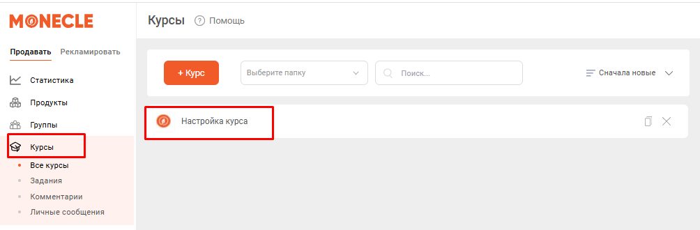 Чтобы проверить статистику, откройте раздел Крусы - Все курсы и выберите нужный (нажмите на него):